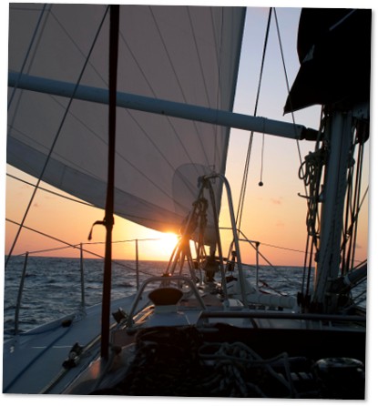 Cuando los vientos son benevolentes y el mar es más amable, tu vida transcurre como la de un monje solitario inmerso en la naturaleza. Disfrutas del placer de la navegación tranquila, recuperas horas de sueño, cocinas, escuchas música, observas amaneceres y puestas de sol de una belleza extraordinaria. Observas a los peces voladores, las aves pescadoras, delfines saltando en el horizonte que vienen a saludarte… te das cuenta de que cada ola es diferente, de cómo se forma una nube, como se transforma y desaparece, a veces en forma de lluvia. Como van cambiando los colores del cielo a medida que el sol avanza y su repercusión sobre todo el escenario, pura vida en movimiento. Te sientes un privilegiado. Aprendes a vivir plenamente en el momento. Te olvidas del calendario y te das cuenta de que no se trata de llegar a ninguna parte, de que lo único importante es el disfrute del camino, sea como sea éste. De que el camino es precisamente la vida.
