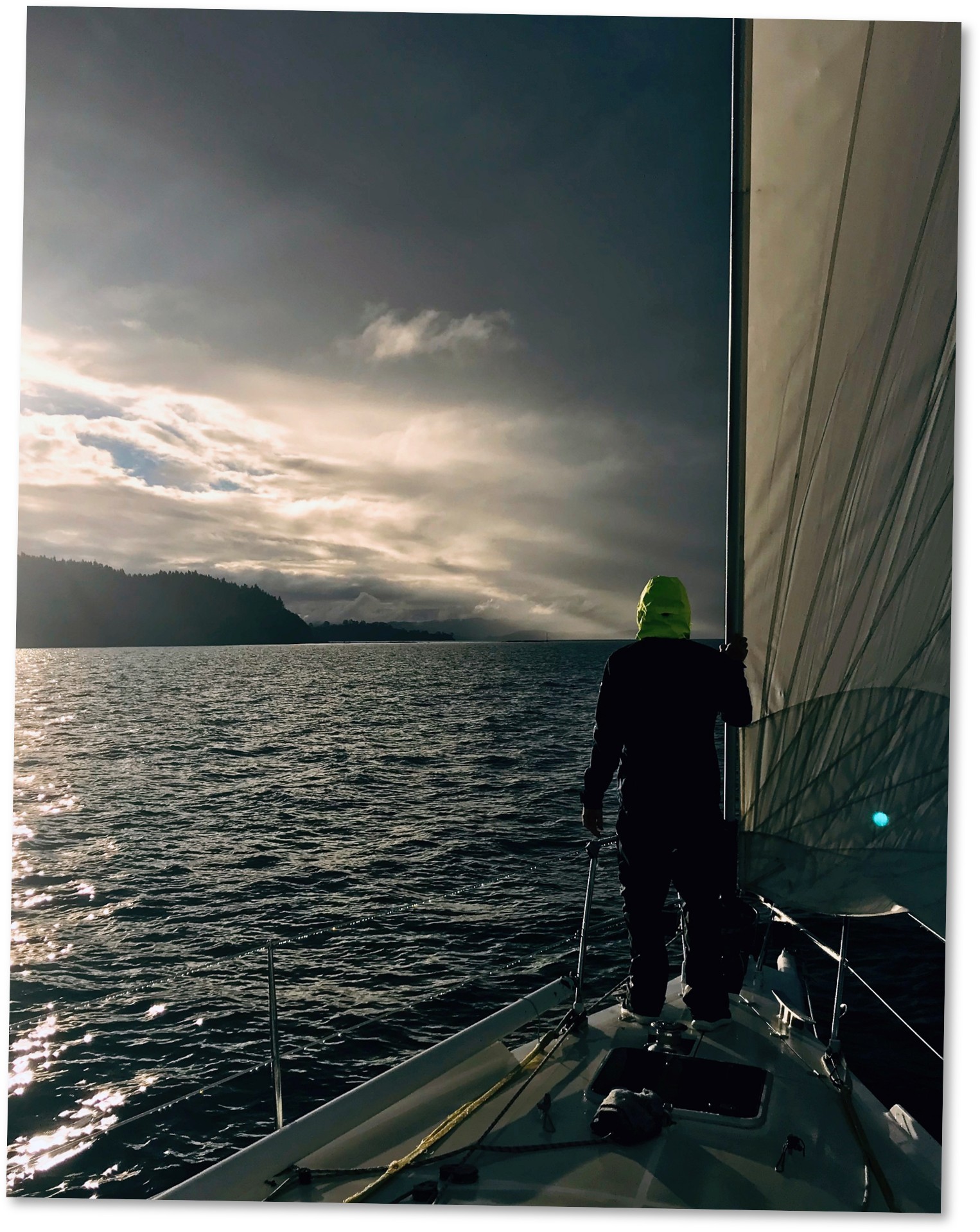 A esto hay que añadirle dos fenómenos esenciales, el primero es que te desplazas empujado por el viento, eso significa que el único sonido que escuchas es el del casco del barco surcando el agua, las olas, la espuma de las olas cuando rompen… Y el segundo es que tu velocidad se sincroniza con la fuerza del viento que hay en ese momento, eso marca la cadencia. Aquí no hay motor ruidoso ni barco que avance propulsándose artificialmente a ritmos contra natura. Aquí todo fluye en perfecta armonía. En estas circunstancias, miras a tu alrededor y eres consciente de que formas parte de todo aquello, eres una pieza más conectada a esta misteriosa y fascinante maquinaria en movimiento que a día de hoy apenas entendemos.
